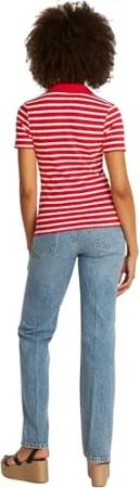 Damen Poloshirt Kurzarm 1985 Pique Slim Fit, Mehrfarbig (Primary Red/Ecru STP), L