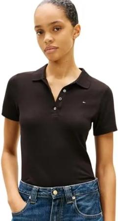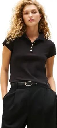 Damen Poloshirt Kurzarm Gold Button Slim mit Stretch, Schwarz (Black), XS