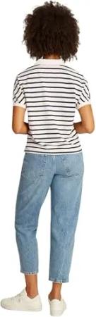 Damen Poloshirt Kurzarm 1985 Pique Slim Fit, Mehrfarbig (Breton Ecru/Dark Night Navy STP), XL