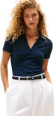 Damen Poloshirt Kurzarm Open Slim Fit, Blau (Dark Night Navy), S