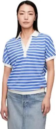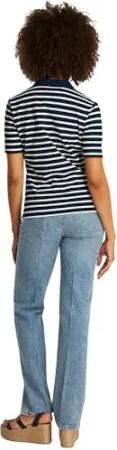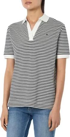 Damen Poloshirt Kurzarm Regular Fit, Mehrfarbig (Breton Ecru/Blue Spell), XS