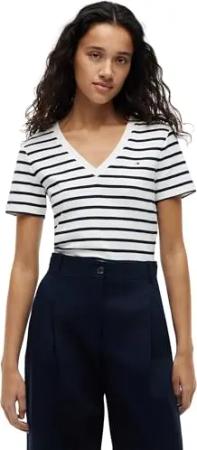 Damen T-Shirt Kurzarm New Slim Cody mit V-Ausschnitt, Mehrfarbig (Breton/ECU/Dark Night Navy), XXL