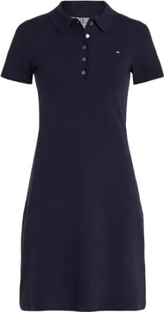 Damen Polokleid Slim Fit V-Neck Kurz, Blau (Dark Night Navy), XL
