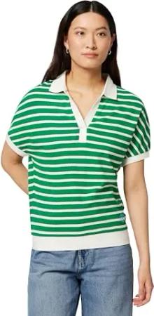 Damen Poloshirt Kurzarm Regular Fit, Mehrfarbig (Citronella/Ecru STP), XS