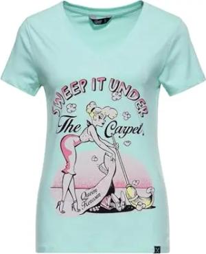 Damen T-Shirt · Printshirt · Vintage · Logodruck · 50s · Retro · Rockabella · Rockabilly · Slim Fit · Elastisch · V-Ausschnitt · Kurzarm · Sweep It Under The Carpet