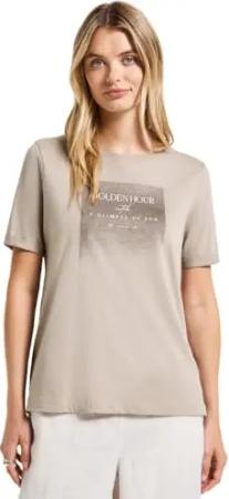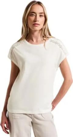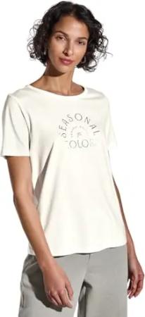 Damen A323579 Shirt mit Glitzer-Wording, Off White, 42