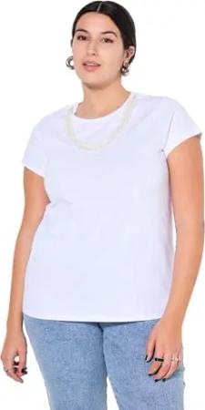 Damen große Größen Übergrößen Plus Size T-Shirt, Classic Shape, abnehmbare Zierkette schneeweiß 46+ 837884200-46+
