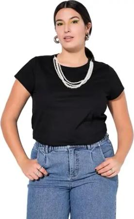 Damen große Größen Übergrößen Plus Size T-Shirt, Classic Shape, abnehmbare Zierkette schwarz 50+ 837884100-50+