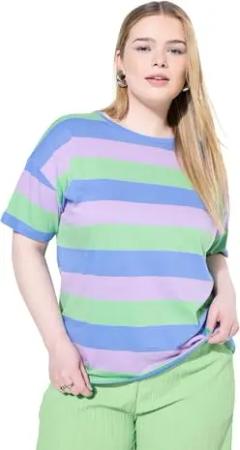 Damen große Größen Übergrößen Plus Size T-Shirt, Oversize Shape, Blockstreifen himmelblau 50+ 841617728-50+