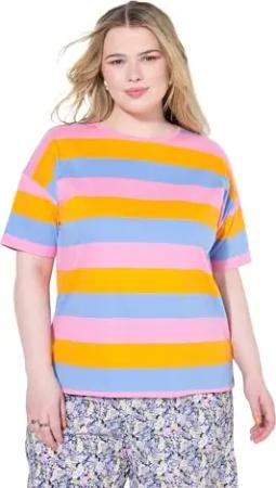Damen große Größen Übergrößen Plus Size T-Shirt, Oversize Shape, Blockstreifen pink 58+ 841617806-58+