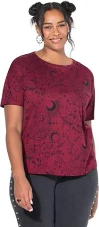 Damen große Größen Übergrößen Plus Size T-Shirt, Oversize Shape, Sternen-Print weinrot 50+ 844254344-50+