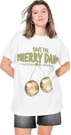 Damen große Größen Übergrößen Plus Size T-Shirt, Oversized, Cherry-Print Offwhite 42+ 839814200-42+