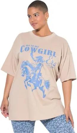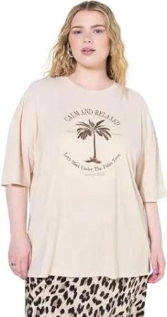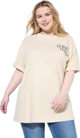Damen große Größen Übergrößen Plus Size T-Shirt, Oversized, Frontprint Sand 46+ 842735310-46+