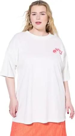 Damen große Größen Übergrößen Plus Size T-Shirt, Oversize Shape, Halbarm, Rückenprint Offwhite 50+ 841474200-50+