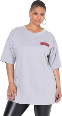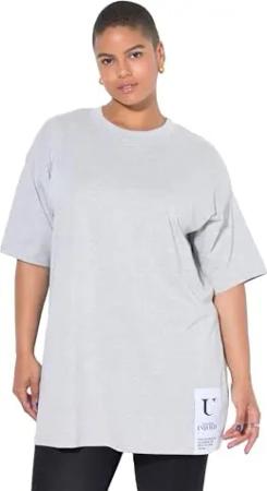 Damen große Größen Übergrößen Plus Size T-Shirt, Oversized, Saumpatch, Halbarm grau Melange 46+ 843557123-46+