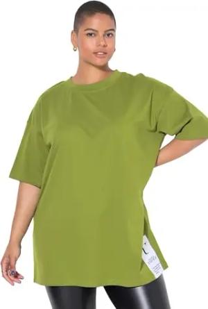 Damen große Größen Übergrößen Plus Size T-Shirt, Oversized, Saumpatch, Halbarm erbse 46+ 843557437-46+