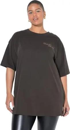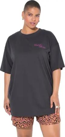 Damen große Größen Übergrößen Plus Size T-Shirt, Oversized, Writing-Print Schwarzbraun 46+ 842641111-46+