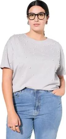 Damen große Größen Übergrößen Plus Size T-Shirt, Oversized, Zierperlen, Halbarm hellgrau 42+ 837774309-42+