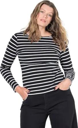 Damen große Größen Übergrößen Plus Size T-Shirt, Slim Shape, Ringeljersey, Langarm schwarz 58+ 844009100-58+