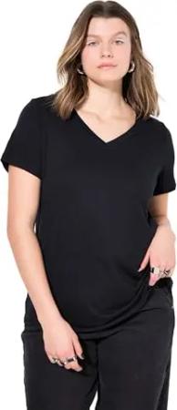 Damen große Größen Übergrößen Plus Size T-Shirt, Wide Classic Fit, V-Ausschnitt, Halbarm schwarz 58+ 815755100-58+