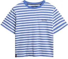 Damen Einfarbiges Country Club T-Shirt Blau Gestreift 38