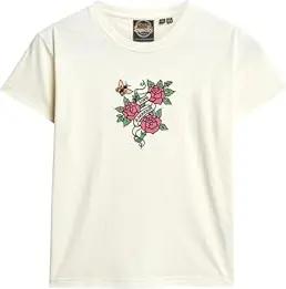 Damen Schmales Vintage Logo T-Shirt mit Strass Dusty White 34