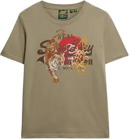 Damen Lässiges Vintage Logo Tokyo T-Shirt Helles Kakigrün Strukturiert 36
