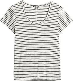 Damen Studios T-Shirt mit tiefem Ausschnitt Weiß/Dunkles Marineblau Gestreift 34