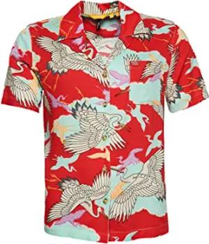 Damen Vintage Beach Resort Hemd Tsuru Rot 34