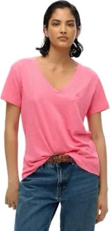T-Shirt Studios Slub EMB Vee 3lu Azalea Pink, Rosa, XXS