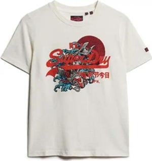 Damen Lässiges Vintage Logo Tokyo T-Shirt Neu Kreideweiß Strukturiert 40