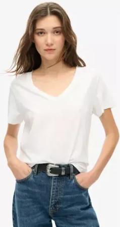 Superdry Damen Weiß Strukturiertes T-shirt Mit V-ausschnitt Und Stickerei, Größe: 42 - Größe: 42