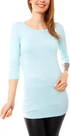 Damen Basic 3/4 Arm Shirt Skinny Longshirt Aqua S/M