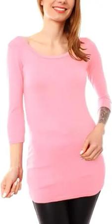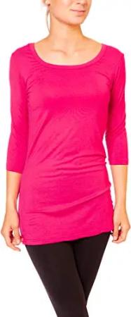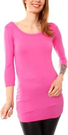 Damen Basic 3/4 Arm T-Shirt Rundhals - langes Unterziehshirt - Longshirt Skinny Fit 1098 - Pink S/M