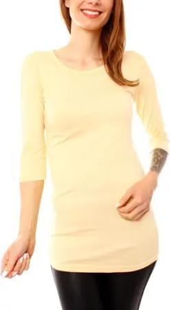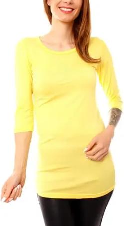 Damen Basic 3/4 Arm T-Shirt Rundhals - langes Unterziehshirt - Longshirt Skinny Fit 1098 - Gelb S/M