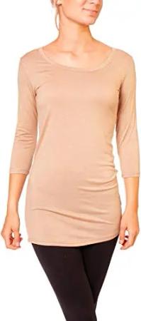 Damen Basic 3/4 Arm T-Shirt Rundhals - langes Unterziehshirt - Longshirt Skinny Fit 1098 - Goldbeige M/L