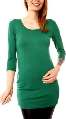 Damen Basic 3/4 Arm T-Shirt Rundhals - langes Unterziehshirt - Longshirt Skinny Fit 1098 - Grün S/M