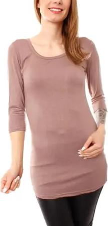 Damen Basic 3/4 Arm T-Shirt Rundhals - langes Unterziehshirt - Longshirt Skinny Fit 1098 - Mauve S/M