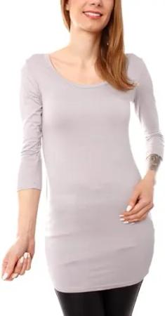 Damen Basic 3/4 Arm T-Shirt Rundhals - langes Unterziehshirt - Longshirt Skinny Fit 1098 - Hellgrau M/L