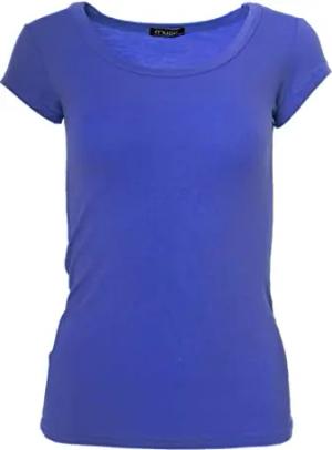 Damen Basic Rundhals T-Shirt - Kurzarm Unterziehshirt Skinny Fit 1001 - Blau L