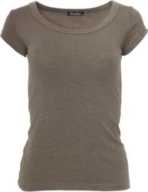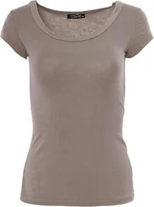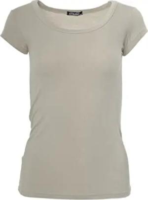Damen Basic Rundhals T-Shirt - Kurzarm Unterziehshirt Skinny Fit 1001 - Taupe L