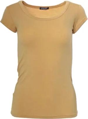 Damen Basic Rundhals T-Shirt - Kurzarm Unterziehshirt Skinny Fit 1001 - Camel M