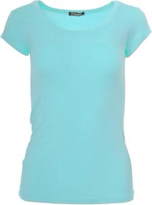 Damen Basic Rundhals T-Shirt - Kurzarm Unterziehshirt Skinny Fit 1001 - Cyan M