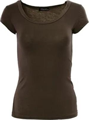 Damen Basic Rundhals T-Shirt - Kurzarm Unterziehshirt Skinny Fit 1001 - Espresso Braun L
