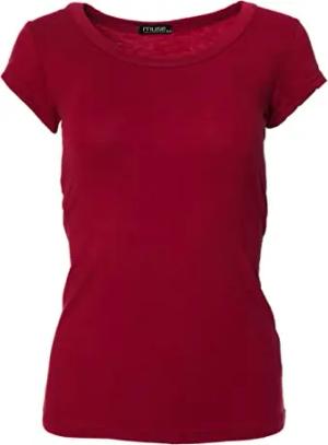 Damen Basic Rundhals T-Shirt - Kurzarm Unterziehshirt Skinny Fit 1001 - Dunkelrot M