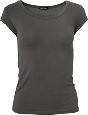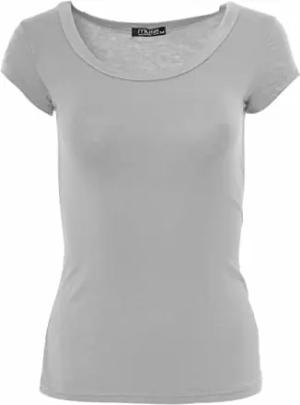 Damen Basic Rundhals T-Shirt - Kurzarm Unterziehshirt Skinny Fit 1001 - Hellgrau M