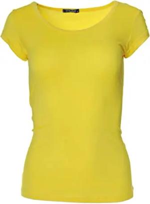 Damen Basic Rundhals T-Shirt - Kurzarm Unterziehshirt Skinny Fit 1001 - Gelb L