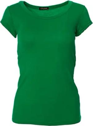 Damen Basic Rundhals T-Shirt - Kurzarm Unterziehshirt Skinny Fit 1001 - Grün L