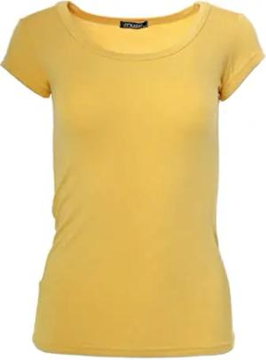 Damen Basic Rundhals T-Shirt - Kurzarm Unterziehshirt Skinny Fit 1001 - Maisgelb S