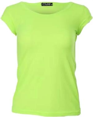 Damen Basic Rundhals T-Shirt - Kurzarm Unterziehshirt Skinny Fit 1001 - Neongrün M